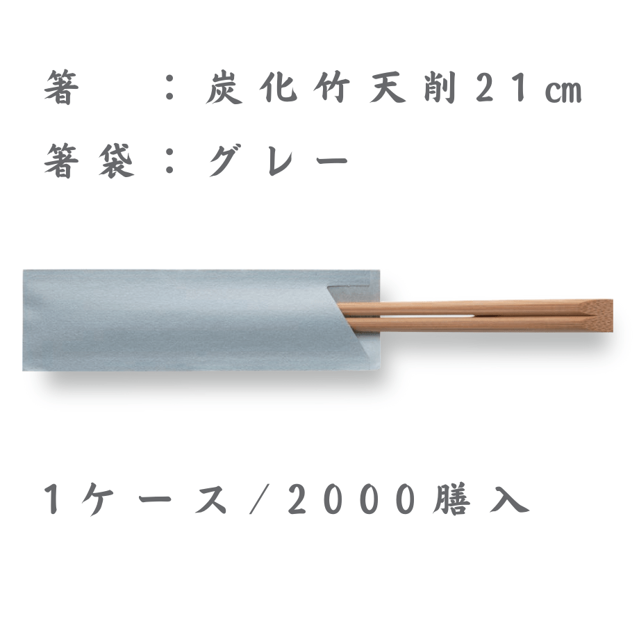 割り箸(袋入) 炭化竹天削 グレー ハカマ袋