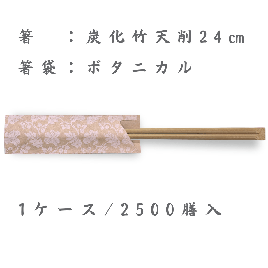 商品名:割り箸(袋入)炭化竹天削 ボタニカル ハカマ袋