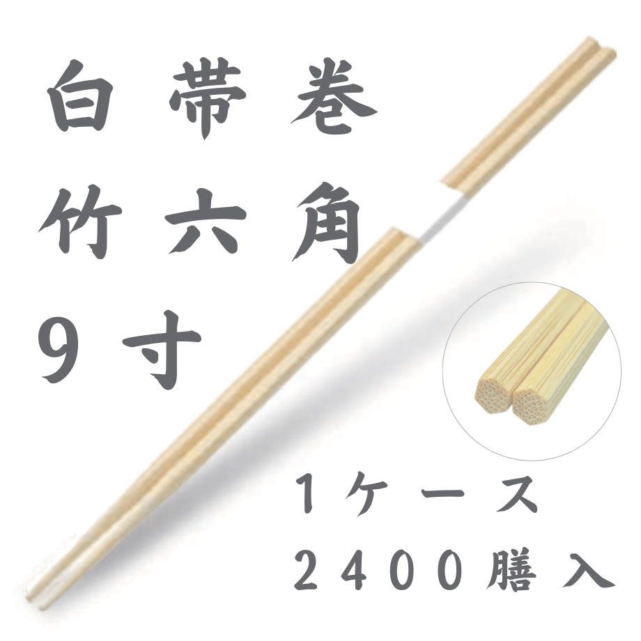 割り箸(裸箸)竹六角 白帯巻(9寸)